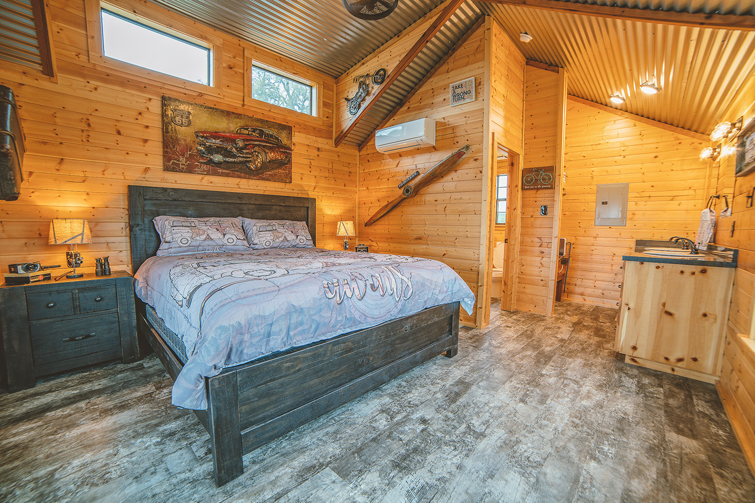For the fun-loving "Traveler", this charming room creates a soothing ambiance that is perfect for some R&R. The room features a king size bed, double vanity/sink, and a walk-in shower.