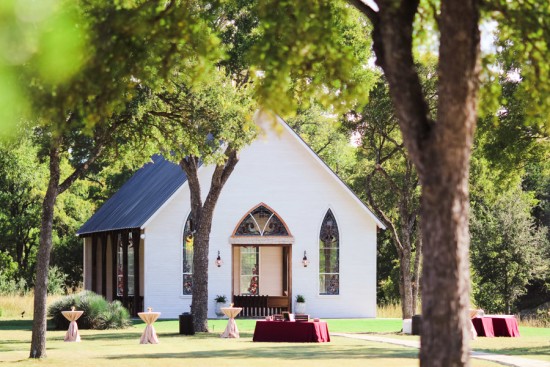 The open air chapel seats 110-130 guests with stunning hill country views and brilliant stained glass.